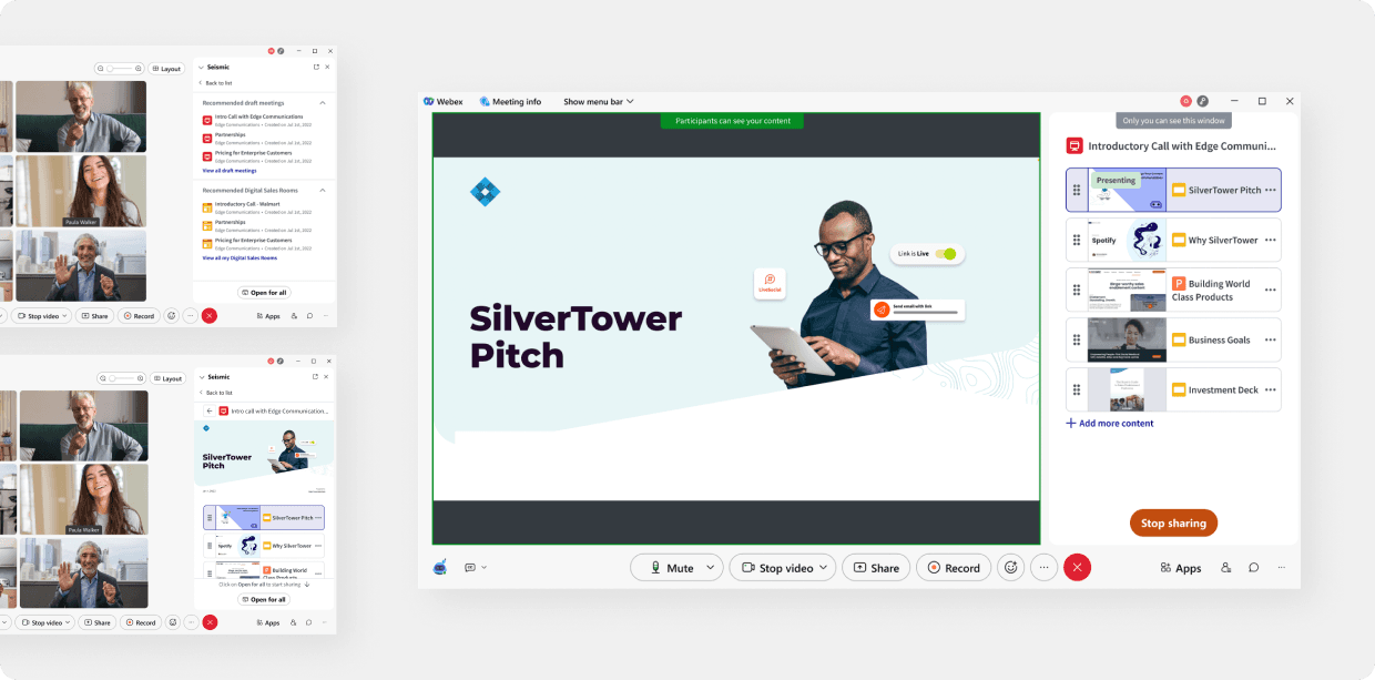Seismic for Webex is an in-meeting app that supercharges sellers’ presentation experience